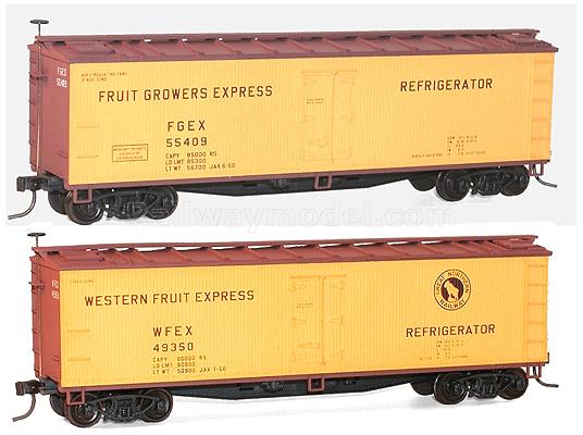 40' деревянный рефрижератор. Набор из 2 вагонов. Комплект для сборки (KIT). Принадлежность Fruit Growers Express #55409, Western Fruit Express #49350