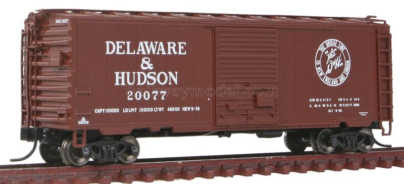 40' стандартный пульмановский товарный вагон PS-1 с 8' дверью, вариант крыши с 12-ю рёбрами жесткости. Принадлежность Delaware & Hudson #20077
