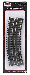 Рельсы Snap-Track код 100 (никелированные рельсы), радиусные 15", чёрные шпалы. Высота рельса 2,5 мм.