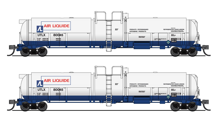 Набор из двух четырехосных железнодорожных цистерн повышенной емкости для транспортировки и хранения жидких криогенных продуктов: кислорода, азота или аргона. Принадлежность Air Liquide