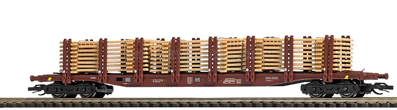 Type Snps 719 Flatcar w/Stakes & Lumber Load -- German Federal Railroad DB (Era IV, brown)