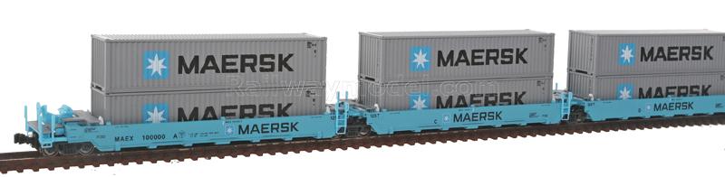 Набор из 5 платформ Gunderson Maxi-I с 40-футовыми контейнерами. Принадлежность Maersk #100000 (с 10 контейнерами)