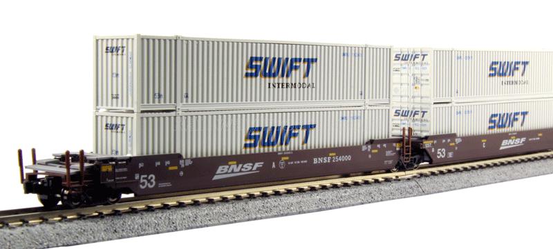 Набор из 3 платформ Gunderson MAXI-IV с шестью 53' контейнерами. Принадлежность BNSF Railway #254000