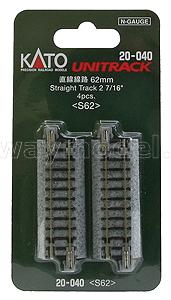 Рельсы KATO Unitrack. Прямая с балластной призмой. Длинна 62мм, в упаковке - 4шт.