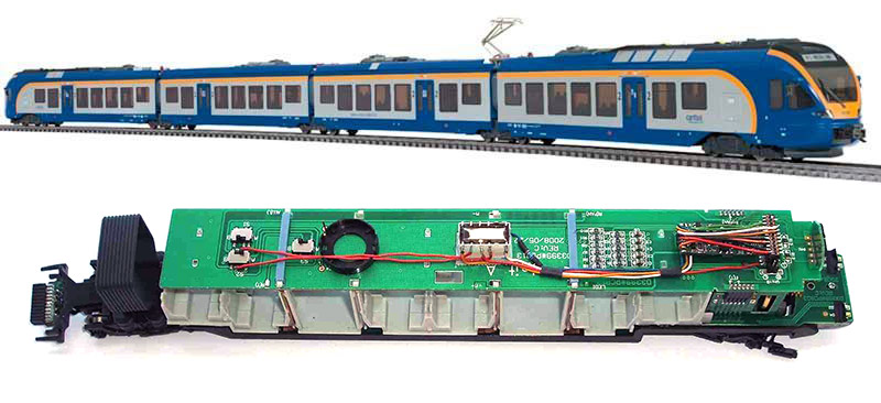 Сменная печатная плата для модели электропоезда Flirt, для использования модели с цифровым декодером DCC. Позволяет решить проблему остановки состава при торможении на высокой скорости.
