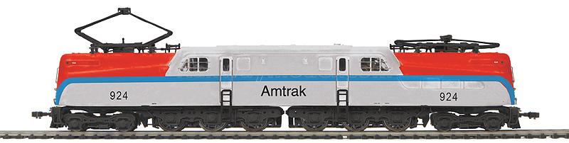 Электровоз GG1. Модель для трёхрельсовой системы Marklin (не подходит для стандартной DC/DCC). Установлен цифровой декодер со звуком Proto-Sound 3E+, а также управляемые с пульта пантографы. Принадлежность Amtrak #924