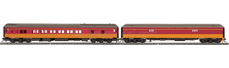 Тяжелый шестиосный багажный и спальный вагоны. Принадлежность Milwaukee Road #1055 & Wauwatosa