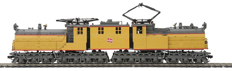 Электровоз EM-2 Bi-Polar. Принадлежность Milwaukee Road #E-5. Установлен универсальный цифровой декодер со звуком Proto-Sound 3, работающий как с аналогом, так и с цифрой. Дистанционно управляемые сцепки PROTO (также в комплекте прилагаются стандартные магнитные сцепки типа Kadee). Моторизованные, управляемые с пульта, пантографы. Металлический корпус. В кабине - фигурки машиниста и помощника, свет в прожекторах и номерных таблицах, освещение в кабине. Минимально рекомендуемый радиус 18" (457 мм). Может использоваться как на рельсах высотой 2.1 так и 2.5 мм.