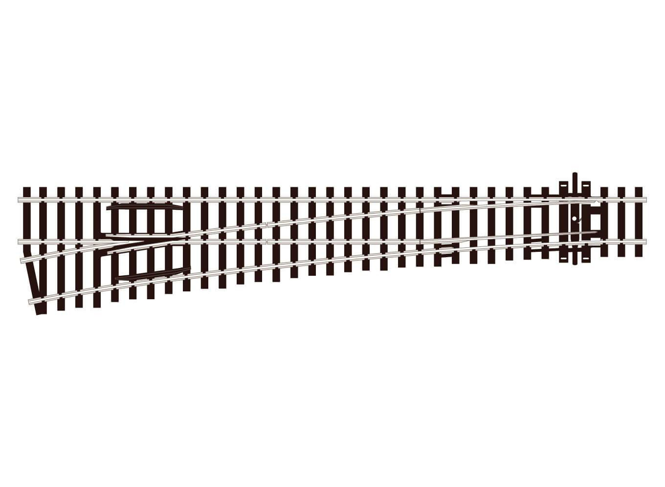 Стрелка левая, радиус 1524 мм 12°, длина 258 мм. Высота рельса 2,5 мм (код 100).