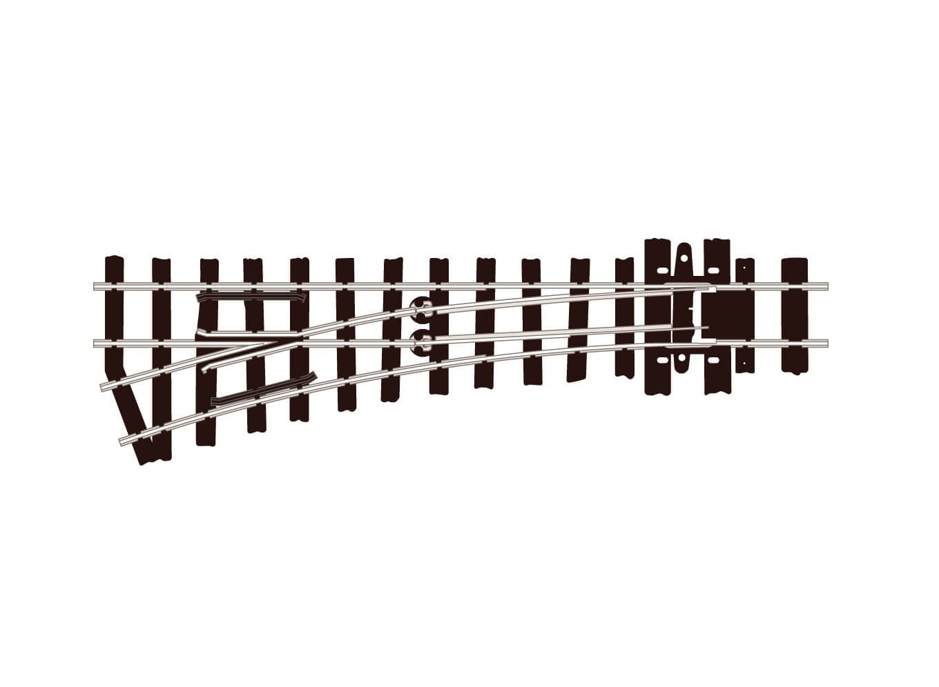Стрелка узкоколейная левая, радиус 304 мм 9.5°, длина 125 мм. Совместима с серий PECO OO-9 Setrack. Высота рельса 2,03 мм (код 80).