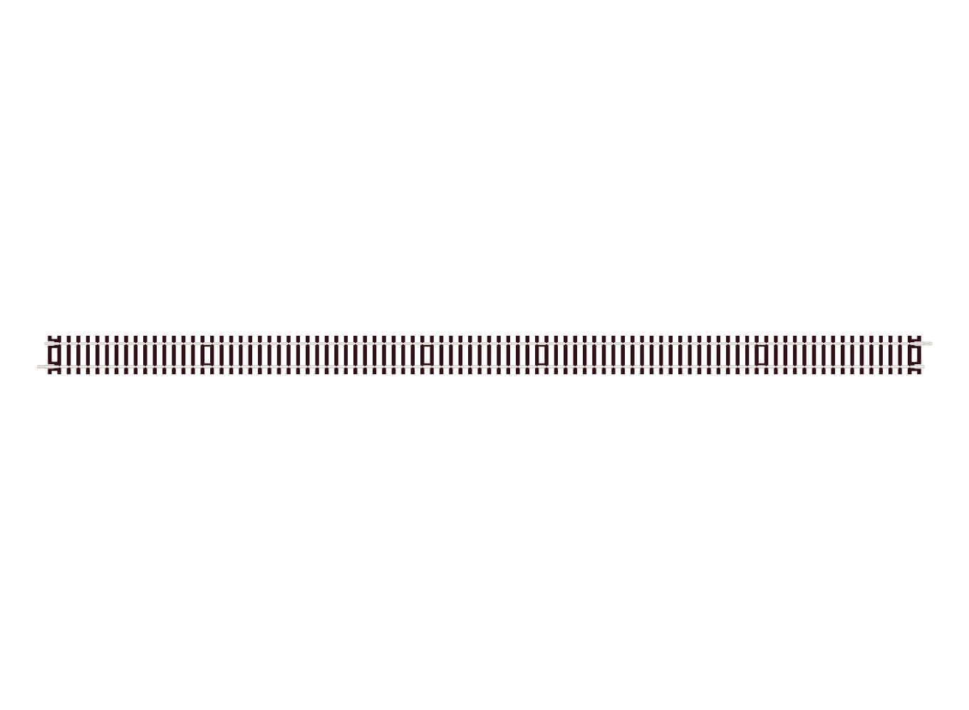 Рельсы прямые длинные (равны 4 стандартным), длина 670 мм. Высота рельса 2,5 мм (код 100).