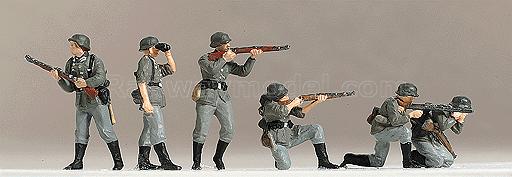 Немецкие пехотинцы в бою, 1939-45 годы. Фигурки окрашенные. Всего 6шт.