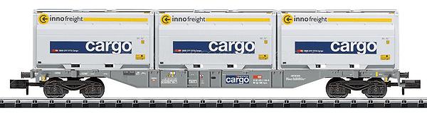 Серия Minitrix. Платформа для перевозки контейнров тип Sgnss с грузом. Принадлежность SBB/CFF/FFS, Швейцария (Эпоха VI)