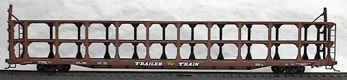 Открытый трёхуровневый вагон для перевозки автомобилей. TTX, на вагон нанесены только технические данные (год постройки, вес и т.п.)