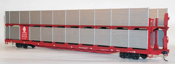 89' частично закрытый двухуровневый вагон для перевозки автомобилей. Комплект для сборки (KIT). Принадлежность Atchison, Topeka & Santa Fe