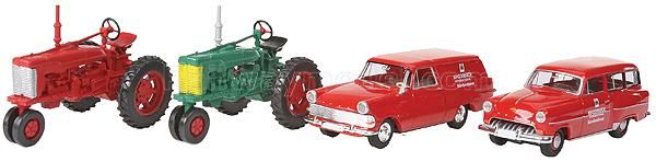 McCormick Vehicle Set. Модель полностью собрана. 1 Each Opel Rekord PII Kasten Cargo & Passenger Wagons, 2 Farm Tractors