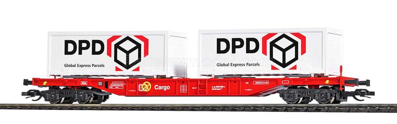 Type Sgns 691 Container Flatcar w/2 Containers -- German Federal Railroad DB (Era V, red w/white, red, black, DPD Containers)