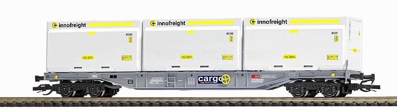 Type Sgns 691 Container Flatcar w/3 Wood Chip Containers -- Swiss Federal Railways SBB #31 85 455 2 018-7 (Era V, Cargo Logo)