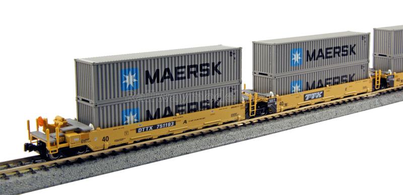 Набор из 5 платформ Gunderson Maxi-I с 40-футовыми контейнерами. Принадлежность TTX #751193 (с 10 контейнерами Maersk)