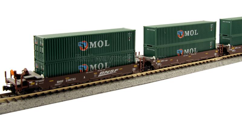 Набор из 5 платформ Gunderson Maxi-I с 40-футовыми контейнерами. Принадлежность BNSF Railway #238782 (с 10 контейнерами MO)