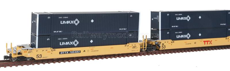 Набор из 3 платформ Gunderson MAXI-IV с шестью 53' контейнерами. Принадлежность TTX #765483