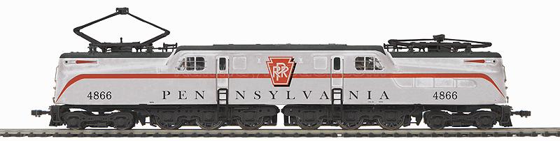 Электровоз GG1. Установлен универсальный цифровой декодер со звуком Proto-Sound 3, работающий как с аналогом, так и с цифрой. Дистанционно управляемые сцепки PROTO (также в комплекте прилагаются стандартные магнитные сцепки типа Kadee). Моторизованные, управляемые с пульта, пантографы. В кабине - фигурки машиниста и помощника, свет в прожекторах и номерных таблицах, освещение в кабине. Принадлежность Pennsylvania Railroad #4866